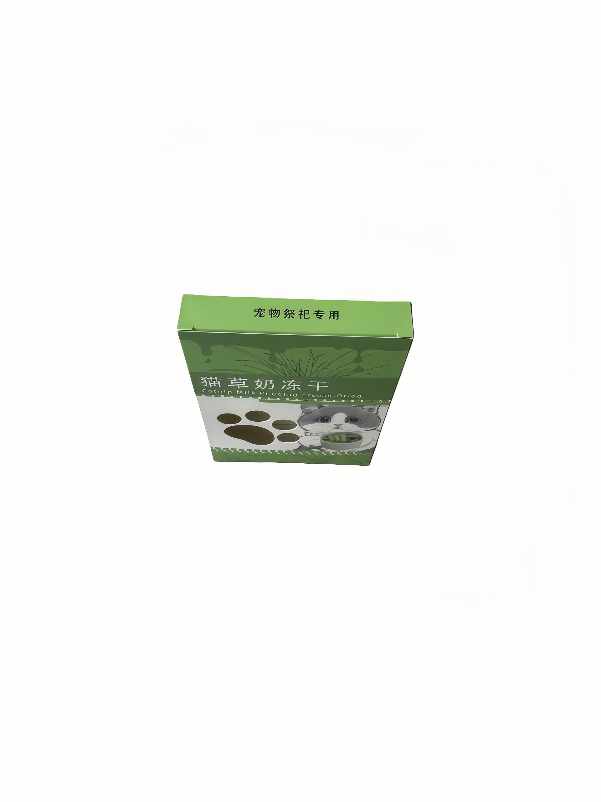 Selected bamboo pulp cardboard, restoring the granular texture of cat grass milk freeze-dried. Following the traditional Chinese custom of burning paper to send longing, the cardboard is unbleached and impurity-free, burning completely. A customized paper offering for cats’ funerals, replicating the snack that helped them pass hairballs during their lifetime, conveying your care with a single piece of paper to protect them in the afterlife